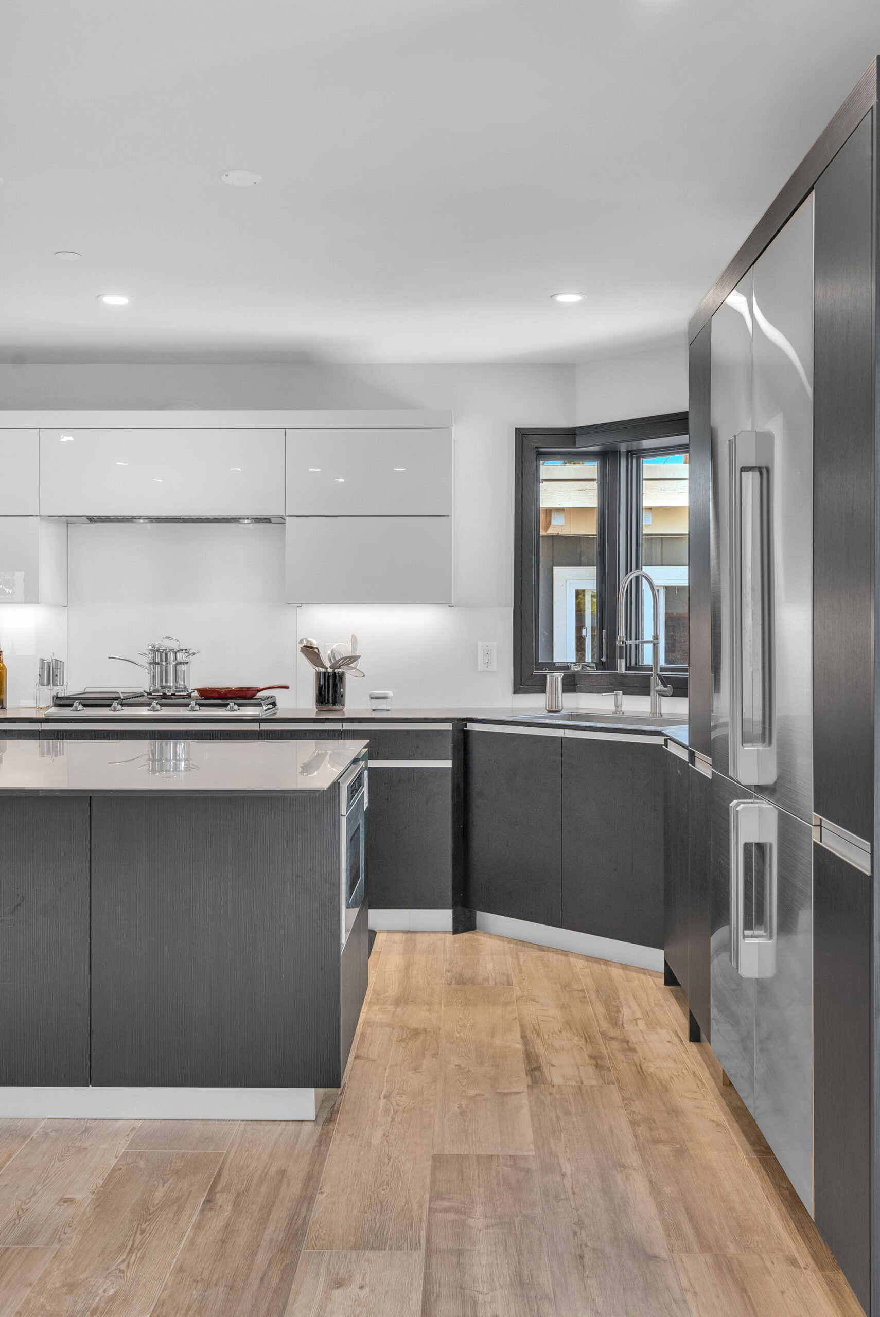 1. Custom kitchen with modern cabinetry, stone surfaces, and designer fixtures