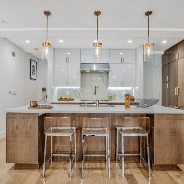 A strategically placed island is a standalone wonder. A chandelier in the kitchen screams sophistication. What hostess would not want these?